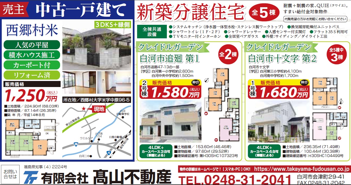白河・西郷エリア 売家情報