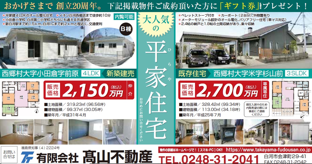 ※どちらの物件も内覧可能ですが、米杉山前の既存住宅に関しては